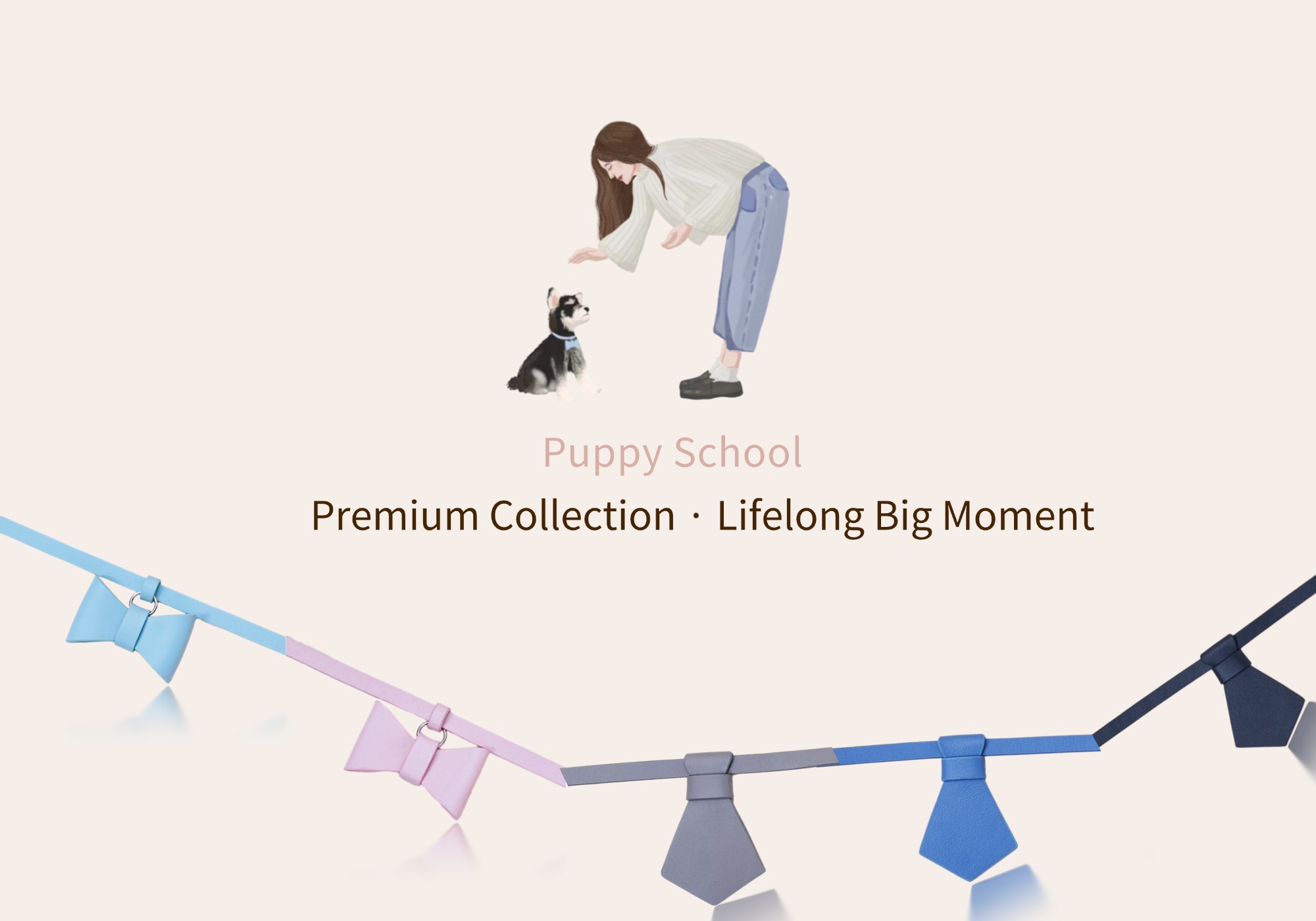 Puppy School BOW-TIE Dog Collar Pink