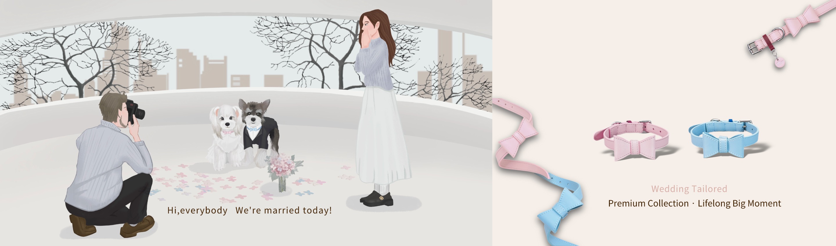 Wedding Premium Dog Collar Pink
